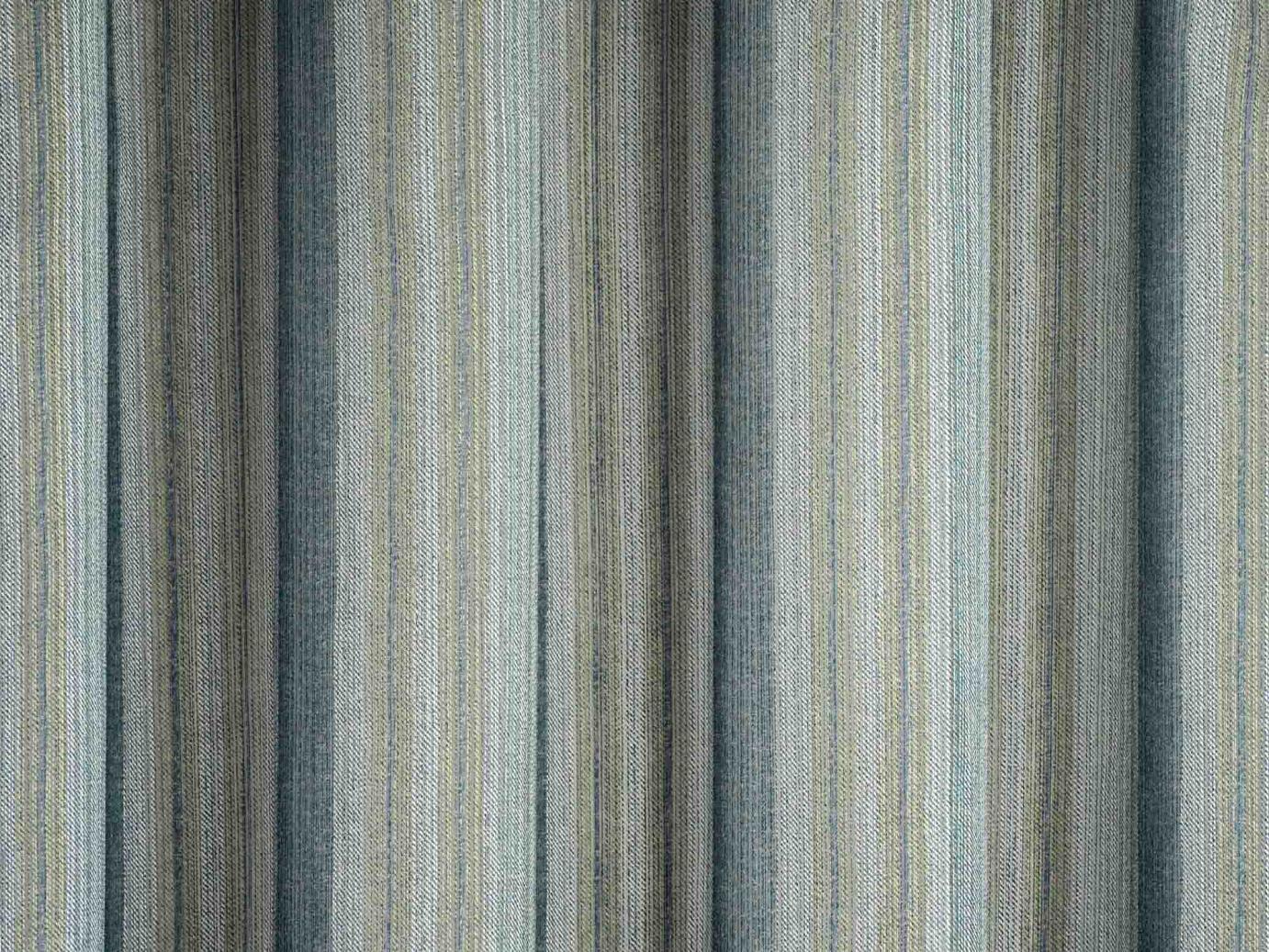 Organza alapba sűrűn szőtt türkiz, sötétkék, ecrü szálak teszik igazán különlegessé ezt a csíkos fényáteresztő függönyt. Ólomzsinór nélküli anyag.