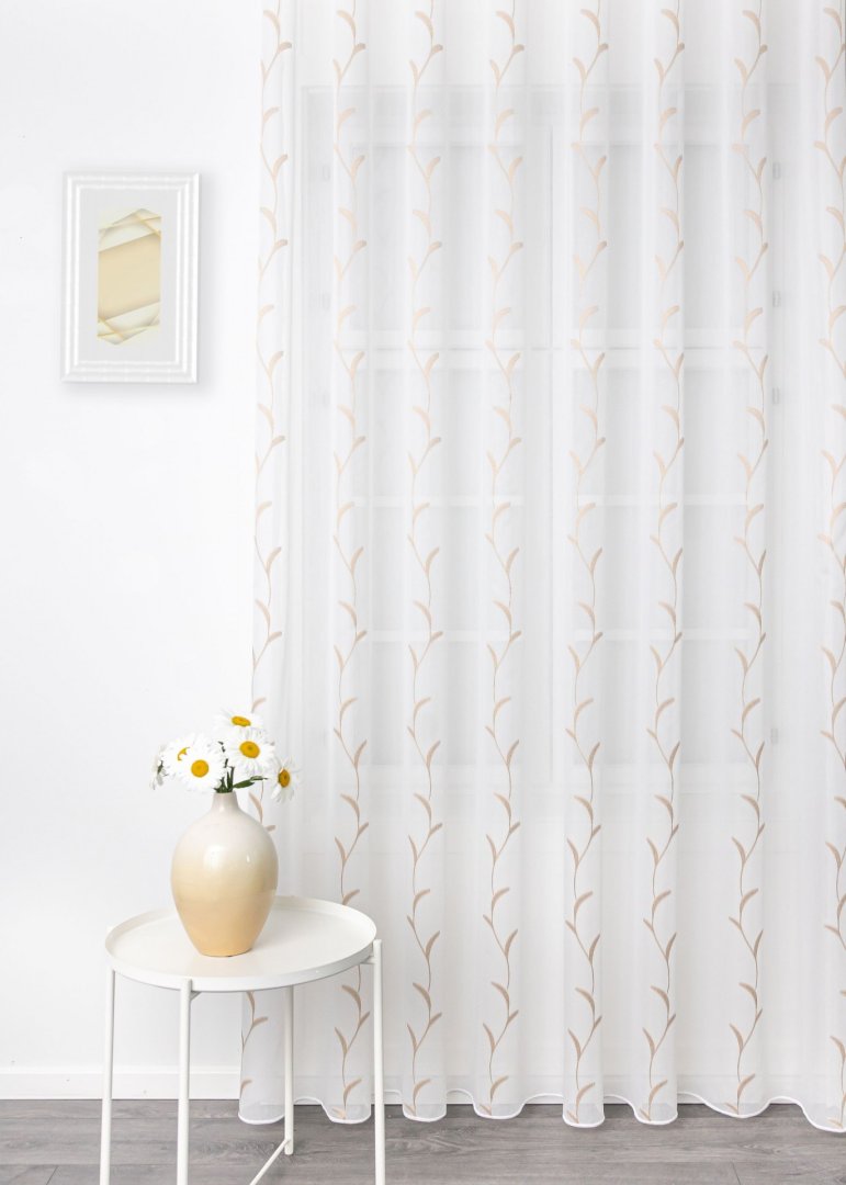 Háromféle színváltozatban rendelhető, hosszanti csíkban futó levélmintával díszített sablé (vasaláskönnyített) anyag.