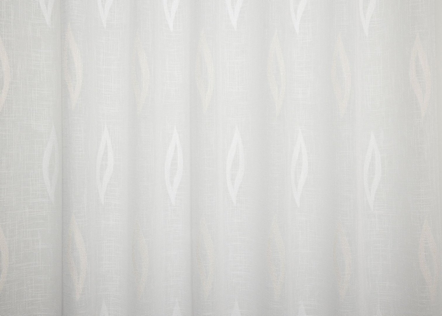 Apró fehér levélmintákkal díszített sablé jellegű, kicsit sűrűbb fényáteresztő függöny-család, háromféle színváltozatban.Vasaláskönnyített anyag.