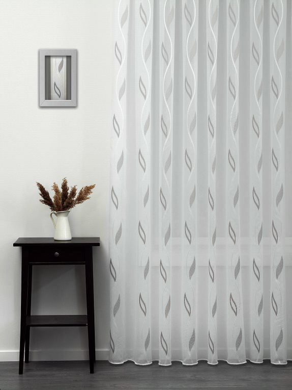 Háromféle szín és kétféle méretváltozatban rendelhető, futó levélmintákkal díszített fényáteresztő függöny család.