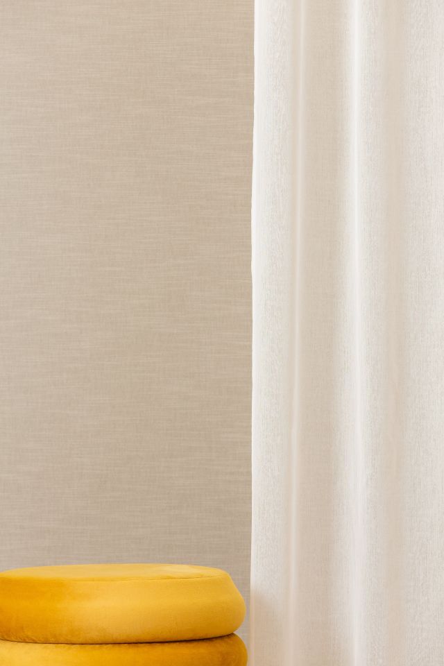 Fehér és ecrü színben választható ez a vasalás könnyített, kedvező árú 310 cm magas sablé anyagú fényáteresztő függöny.