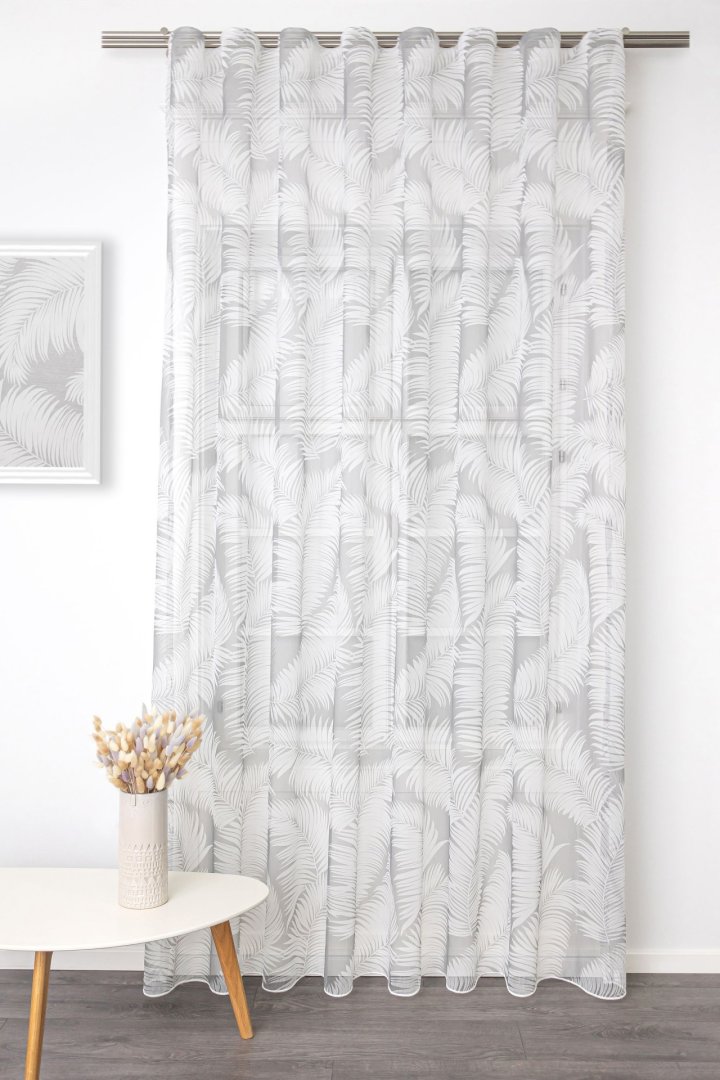Nagyon különleges, nagy levelekkel díszített fényáteresztő függöny. Háromféle színváltozatban rendelhető, teljesen vasalásmentes anyag.