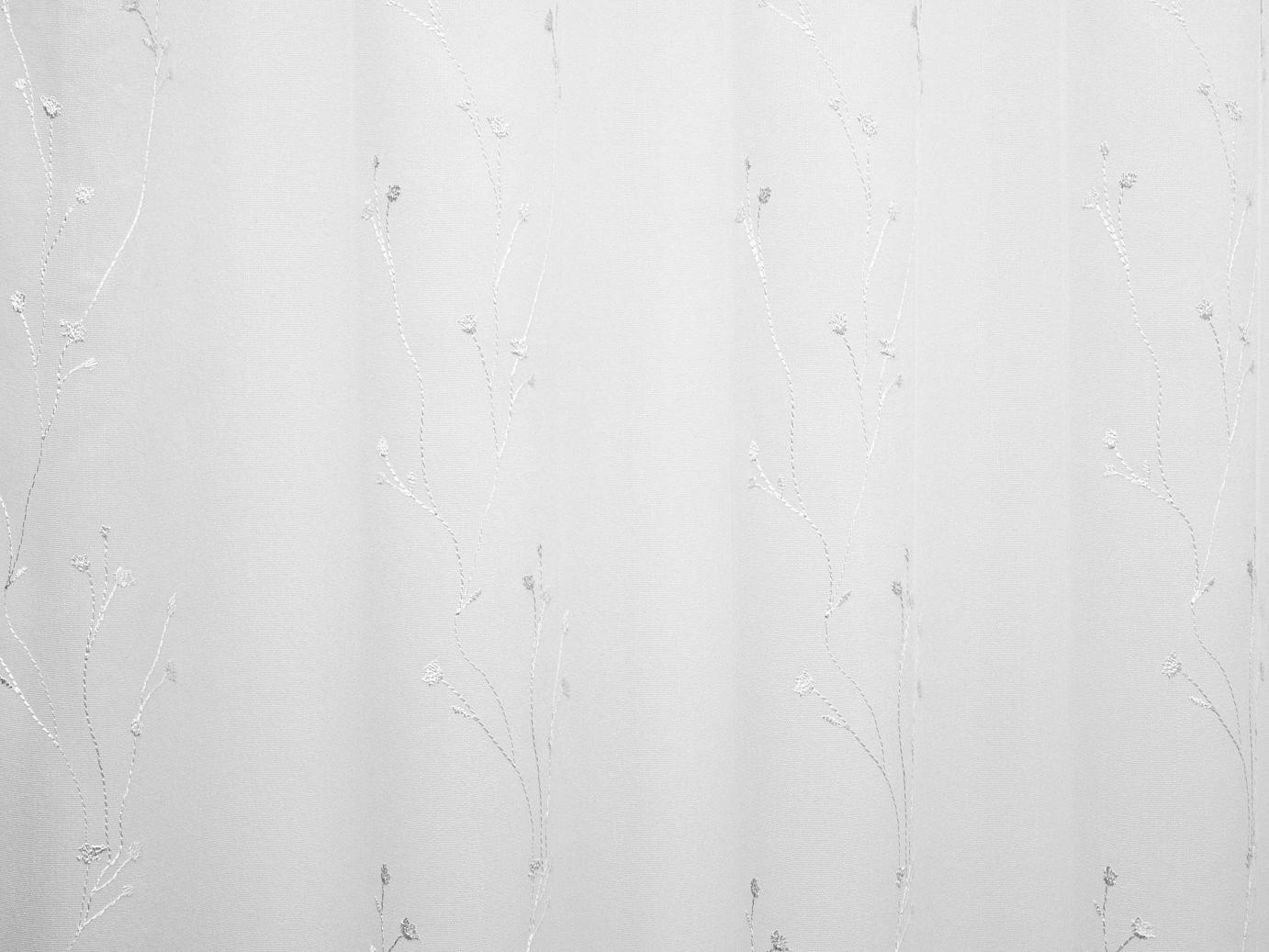 Gyönyörű tüll alapú fehér virágokkal hímzett fényáteresztő. A hímzés 261cm-ig tart.