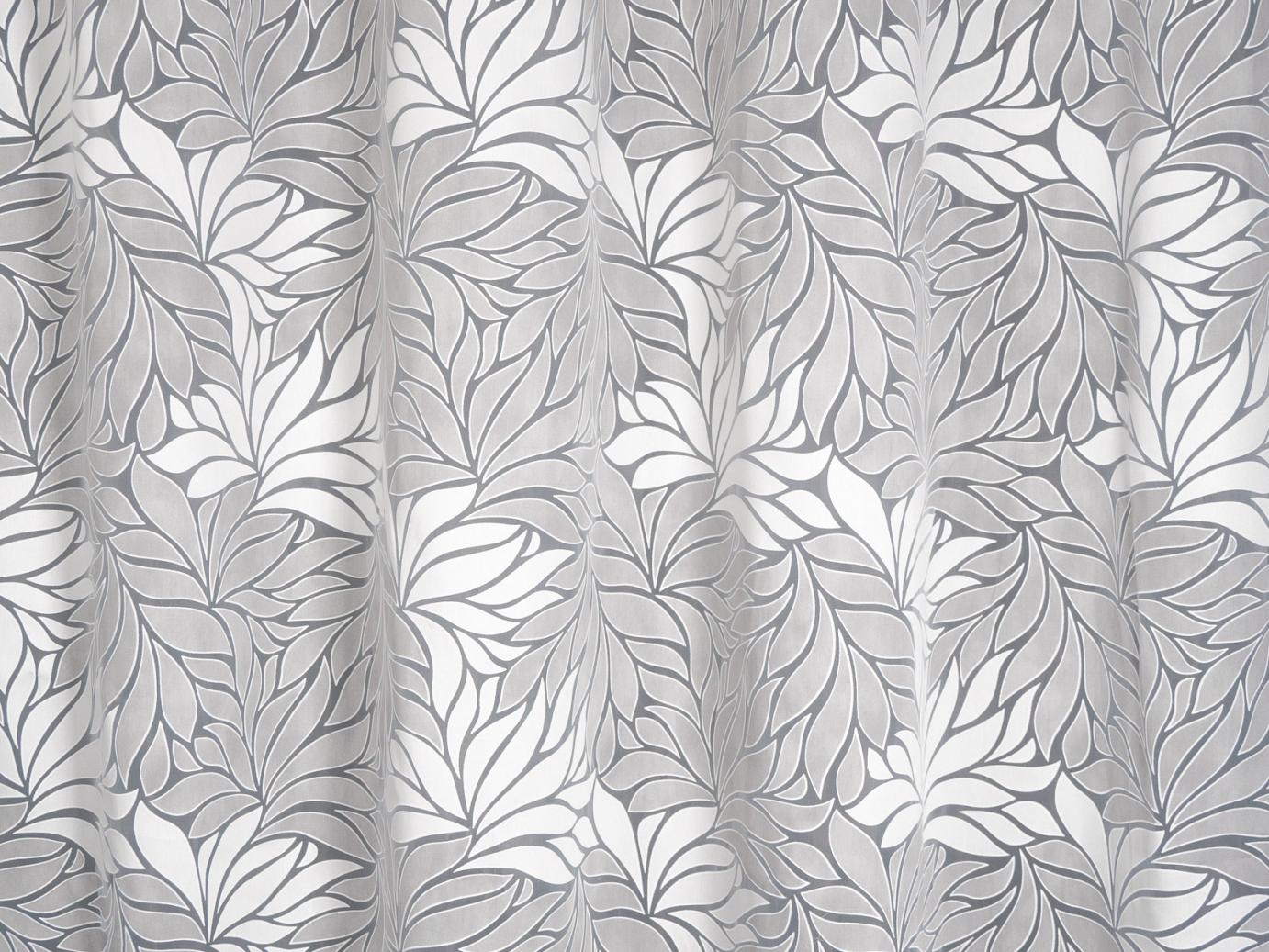 Igazi függönykülönlegesség. Tükörorganza alapon maratott fehér-drapp levélmintákkal díszített anyag.
