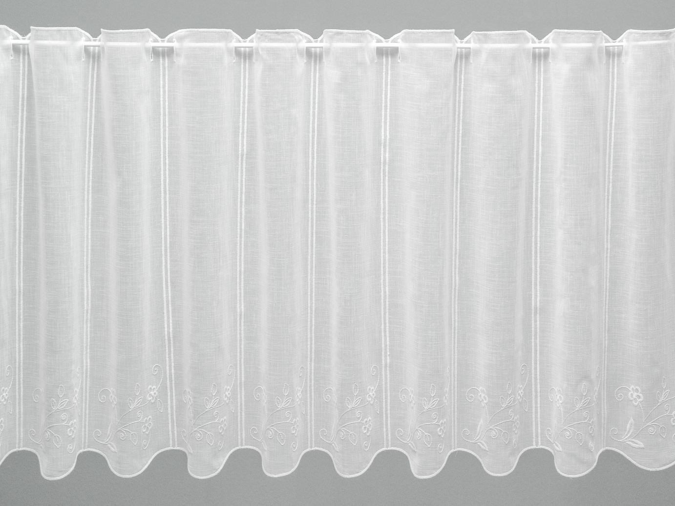 Hímzett virágmintával díszített, négyféle méretben rendelhető (45, 60, 90, 120 cm) vitrázsfüggöny.
