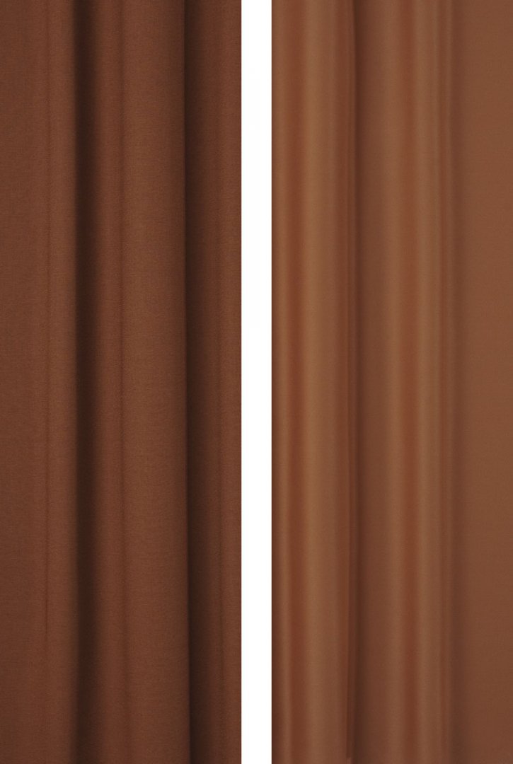 Kétoldalú black out sötétítő függöny. Egyik oldala barna, másik rozsda színű. Teljes sötétítésre és hőszigetelésre alkalmas dekorfüggöny.