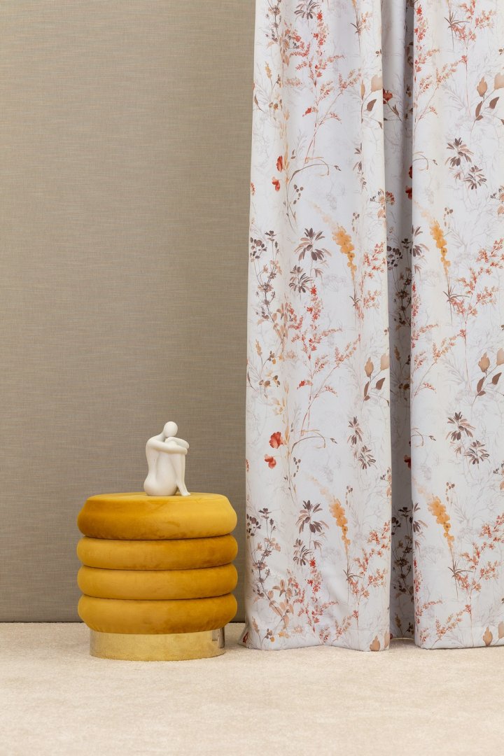 A 2023-as év újdonsága, ez a krém alapra nyomott virágos dimout. Jól ismert a dimout/blackout anyagok, kiváló fény és hőzáró tulajdonsága.