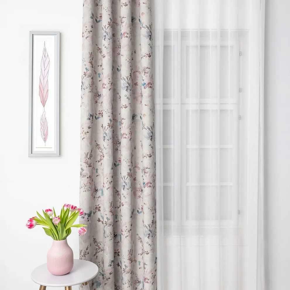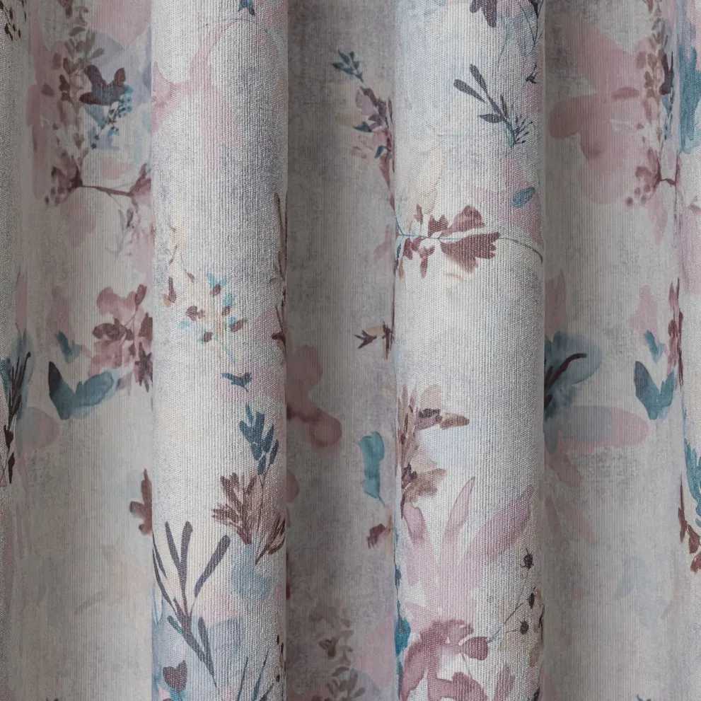 Duplaszéles, kivételes mintázatú dimout dekorfüggöny. A textil mintázata (virágok) aprólékosan kidolgozott, mintha festmény lenne. Három pasztell színváltozatban rendelhető.