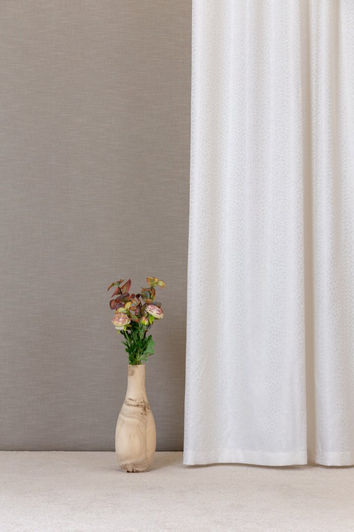 Anyagában nyomott mintás (kőmintához hasonló) dekorfüggöny. Kedvező árú, hiszen dupla széles 300 cm-es, súlya : 193g/m2. Háromféle színváltozatban (fehér, ecrü, café) rendelhető.