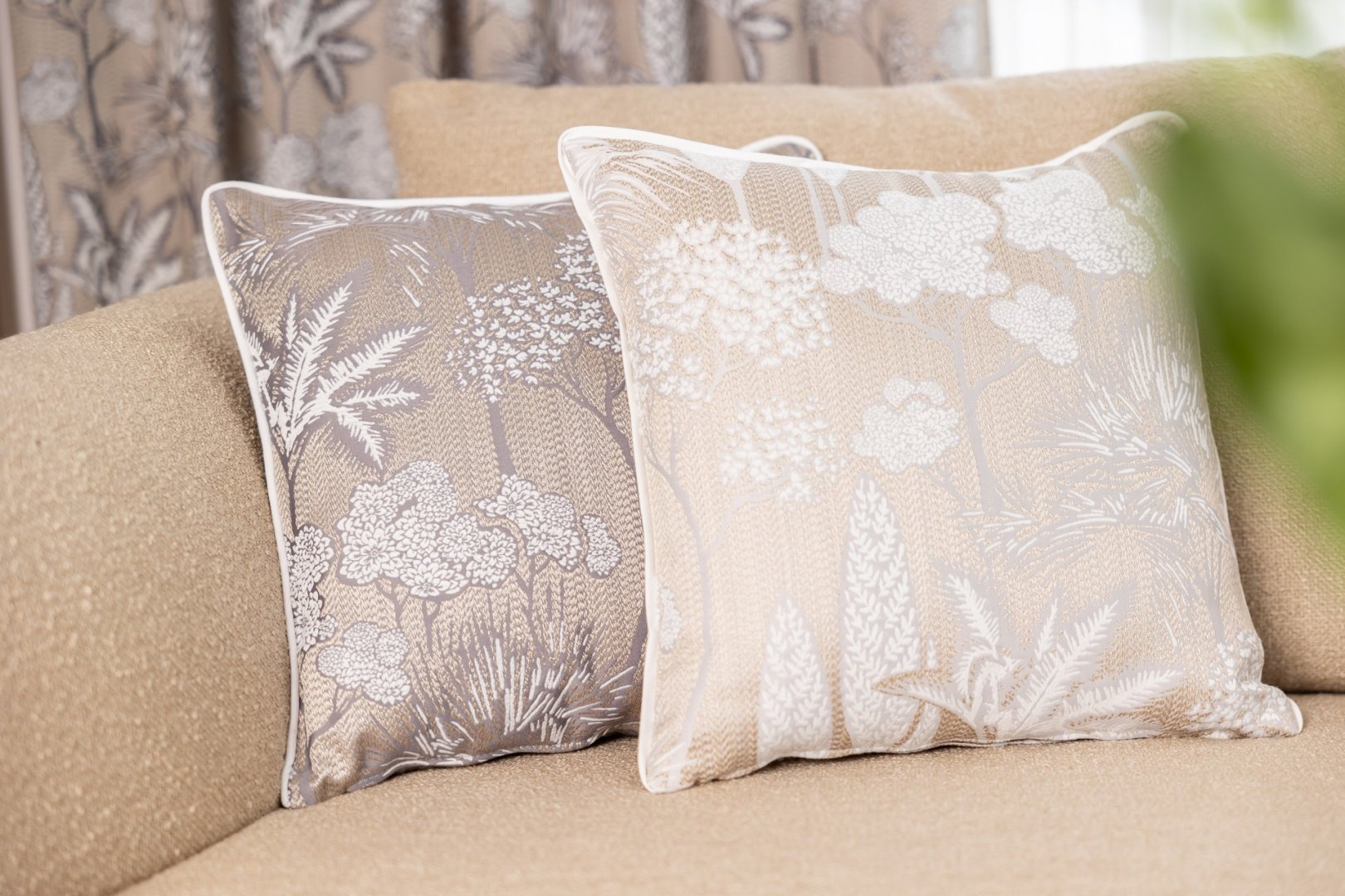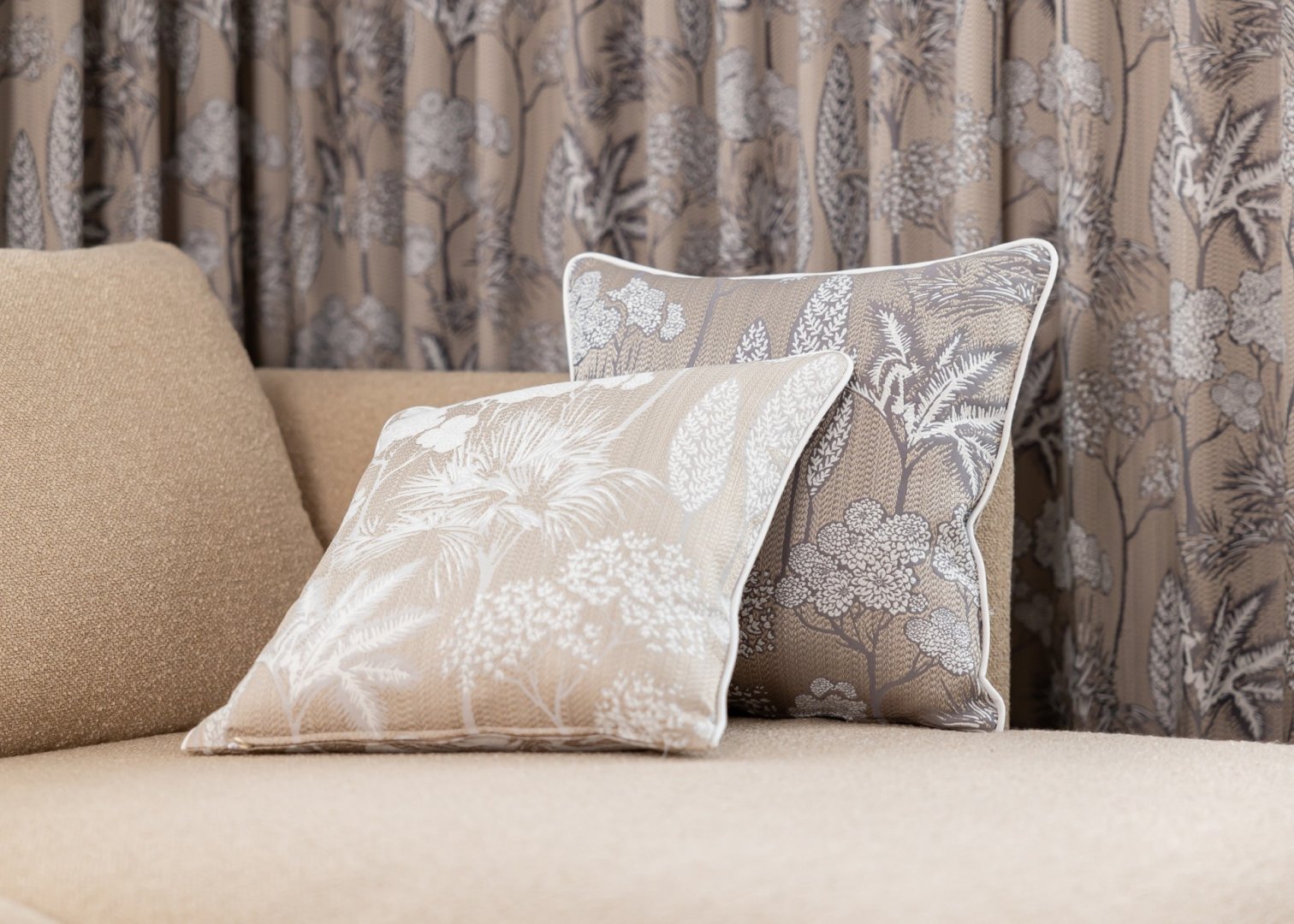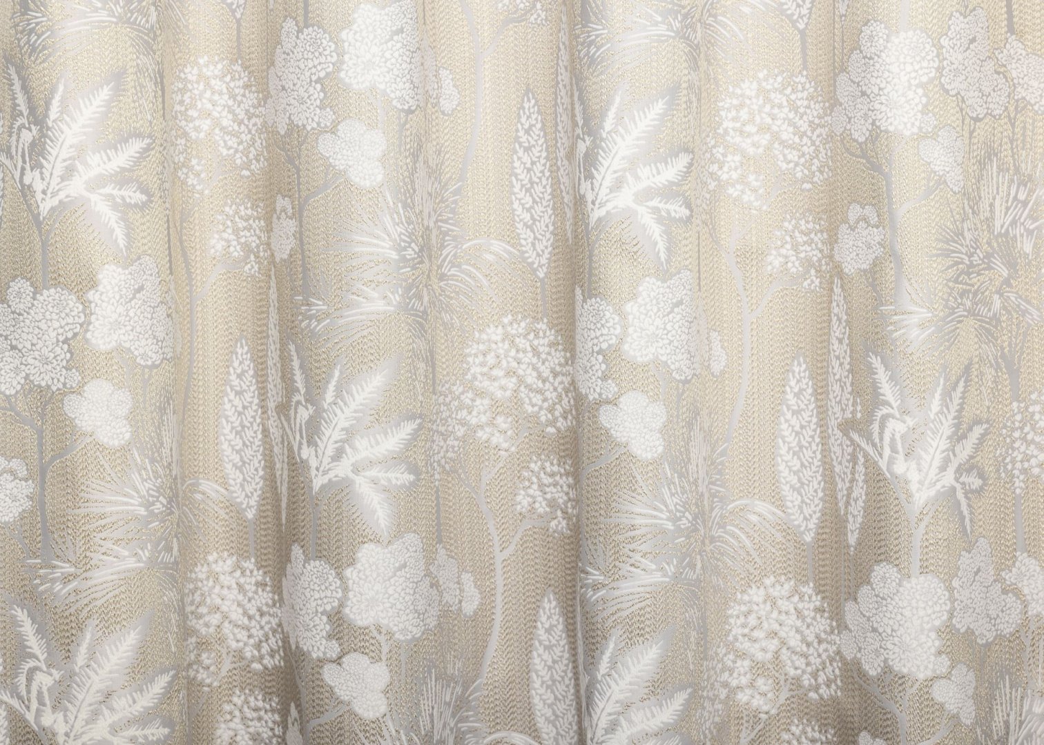 Szövött virágokkal és levelekkel sűrűn díszített dekorfüggöny. Merész színű és mintázatú dekoranyag-család, mely közel varázsolhatja Önhöz a természetet.
