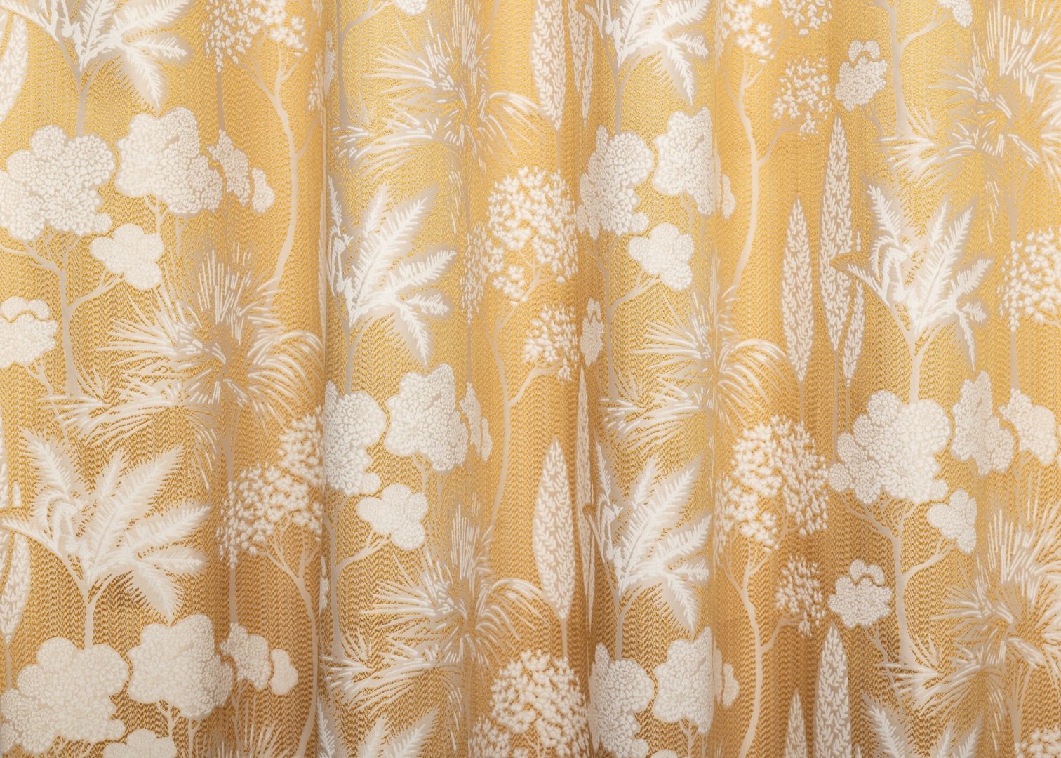 Szövött virágokkal és levelekkel sűrűn díszített dekorfüggöny. Merész színű és mintázatú dekoranyag-család, mely közel varázsolhatja Önhöz a természetet.