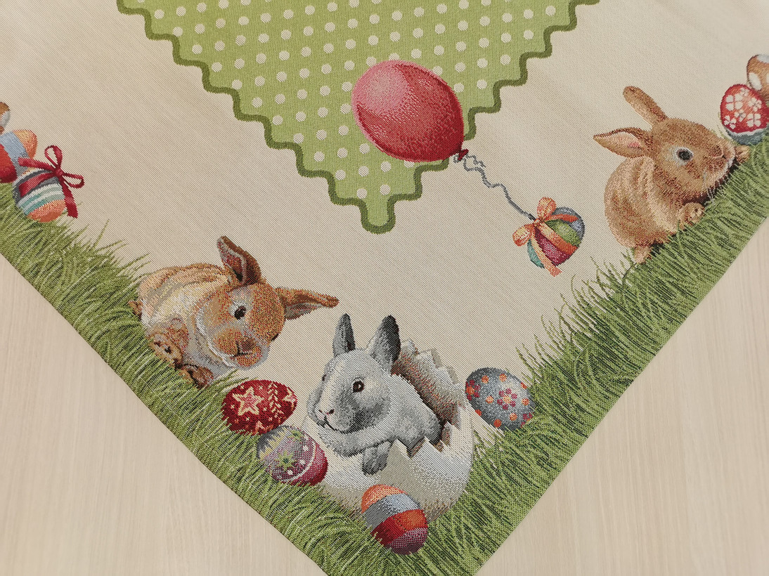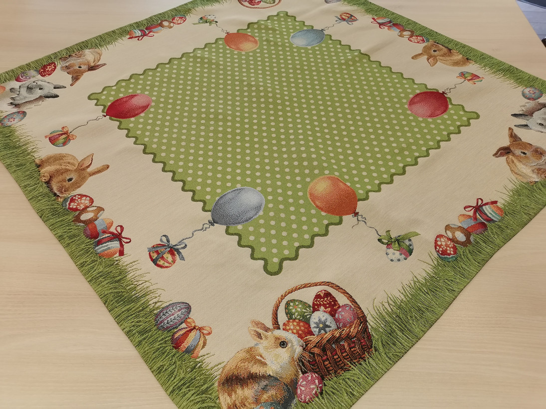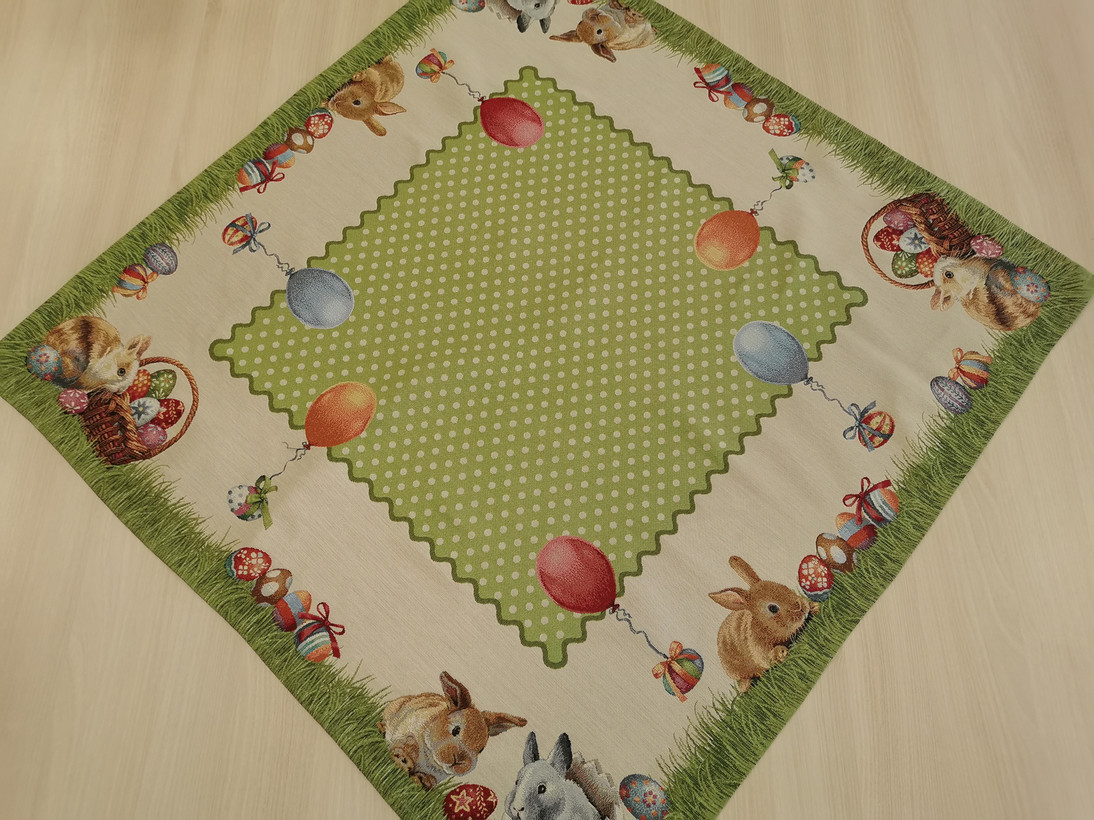 Húsvéti nyuszis 100 cm x 100 cm -es asztalközép, melyhez díszpárna is rendelhető.